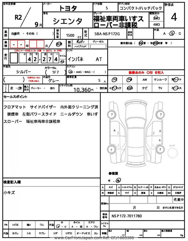 Toyota Sienta 2020 for sale in Jamaica - Jmd. 3,435,482