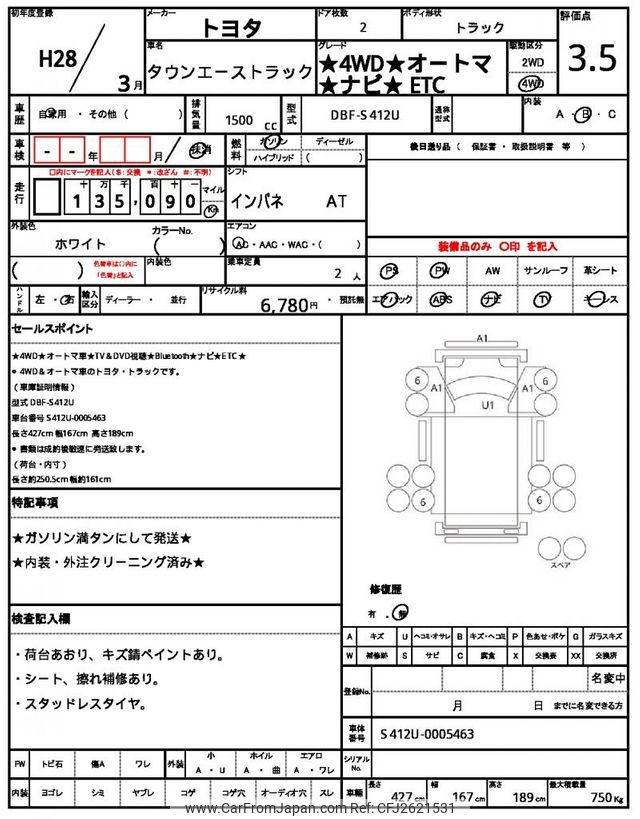 Toyota Townace Truck 2016 for sale in Jamaica - Jmd. 2,516,993